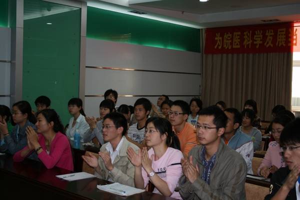 医学三系学生党员对李朝品副院长的讲话报以热烈掌声