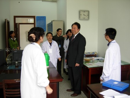 4月29日上午,李朝品副院长在医学一系蒋韶明、陶香香等老师的陪同下,参观了临床医学专业毕业技能考试考场。蒋韶明同志向李朝品副院长介绍了此次毕业考试改革试点工作的运行情况,着重介绍了此次临床技能考试的流程及各站的考试内容与方式。李朝品副院长深入到各考站第一线,详细了解了情况,并就此次临床技能考试试点工作同各位考官进行了交流。他指出,临床技能的培养是医学生教育过程中的一个至关重要的环节,这种考试模式不仅对毕业生有着重要的现实意义,同时也为附属医院、教学医院带教老师的实习教学工作指明了方向。