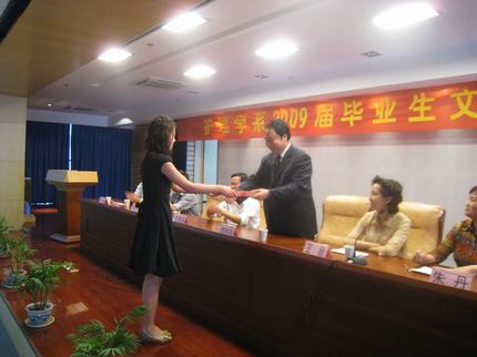 随后,毕业生代表郭茜作了表态发言;黎静宣读了护理学系2009届全体毕业生致全校毕业生的文明离校倡议书,并将记录有毕业生向母校建设和发展献计献策的留言簿呈交给李朝品副院长,表达莘莘学子对母校热爱和未来发展的高度关注。
