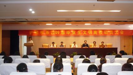为进一步加强毕业生政治思想教育,推动护理学系2009届毕业生文明离校教育活动的顺利开展。5月8日上午,护理学系在图书馆三楼学术报告厅召开2009届毕业生文明离校教育动员大会。校党委副书记郑勇超,副院长李朝品,教务处长王丽,学生处处长钱何珍、副处长阮笑芳,护理学系党政领导、学生辅导员以及全体2009届毕业生参加了大会。会议由系副主任朱丹主持。