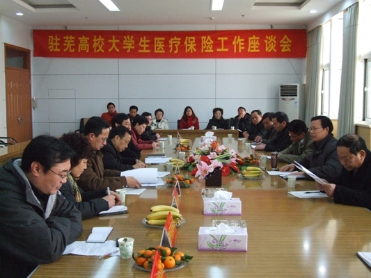 12月26日驻芜高校大学生医疗保险工作座谈会在我校召开。省教育厅学生资助管理中心朱彤主任及10所兄弟院校负责大学生医疗保险工作的负责同志参会。我校党委副书记郑勇超到会,并欢迎各位客人光临。大家就大学生参加城镇居民医疗保险工作进行了交流,并对执行省教育厅“安徽省高等学校在校大学生参加城镇居民基本医疗保险实施意见”(教办[2008]6号)文件过程中存在的问题作了汇报。最后朱彤主任强调:大学生医疗保险工作是一项民生工程,希望大家高度重视,并表示将把大家提出的问题与有关部门研讨沟通,形成制度,最大限度保障学生利益。