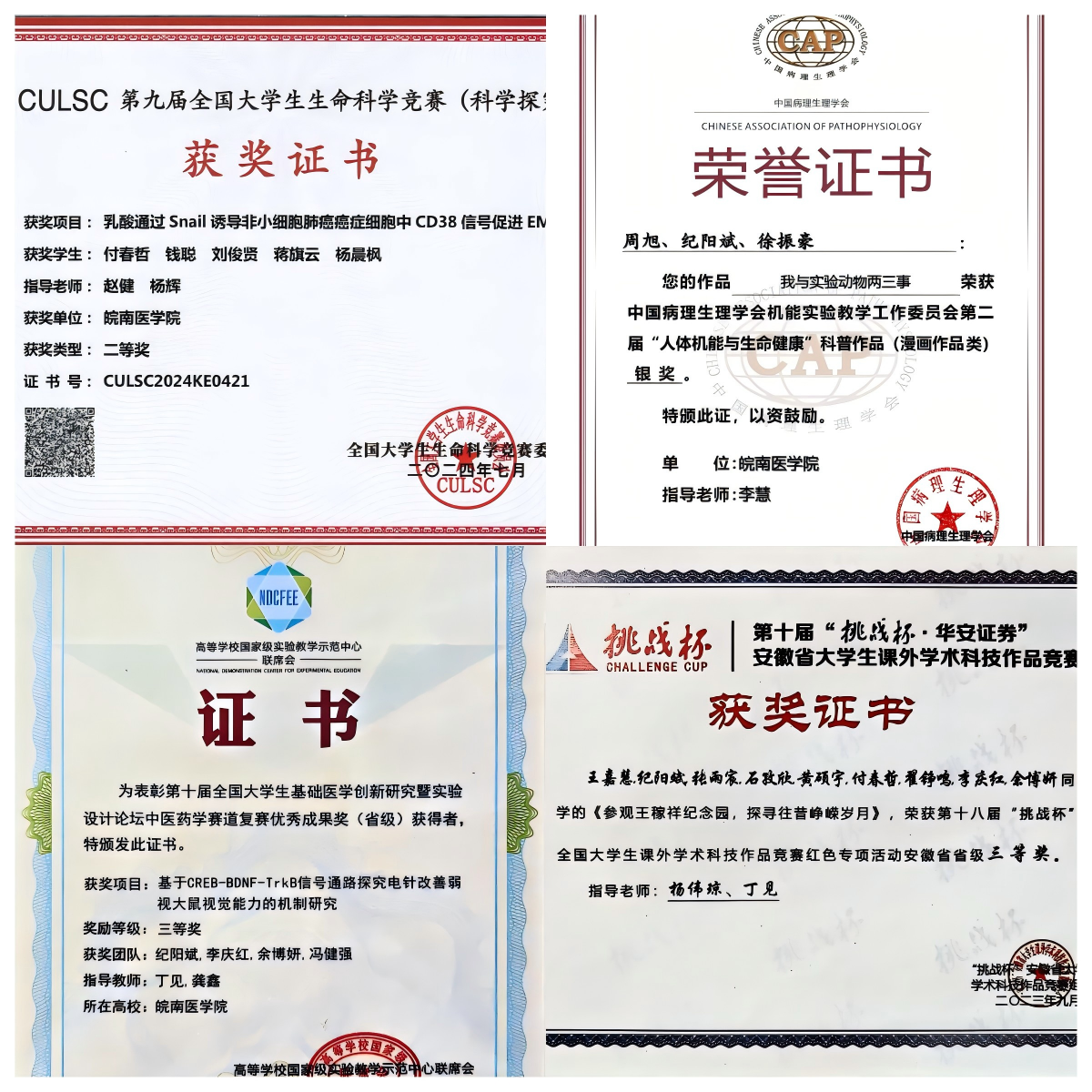 紧密围绕立德树人根本任务,以省“三全育人”综合改革试点院系建设为抓手,持续加强对学生的教育、引导和管理,促进学生全面发展。获全国大学生麻醉学知识竞赛一、二、三等奖各1项;“互联网+”创新创业大赛国家级铜奖1项,省级金奖1项、银奖2项、铜奖17项;“创青春”创业大赛国家级银奖1项、铜奖1项,省级金奖3项、银奖1项、铜奖11项;“挑战杯”课外学术科技作品竞赛国家级三等奖1项,省级一等奖2项、二等奖5项、三等奖5项;第十届“挑战杯”安徽省大学生课外学术科技作品竞赛红色专项14人次获奖;先后获批25项国家级、74项省级和14项校级大学生科研项目,本科生发表学术论文5篇。1名同学获团中央健康扶贫活动“先进个人”称号,2名同学获评中共安徽省委组织部、共青团安徽省委员会、安徽省学生联合会开展的纪念“五四运动”红色信息征集评选活动二等奖,1人获全国“大学生讲思政课”比赛一等奖,获“学习马克思主义理论成果大赛”省级三等奖1项,全国大学生英语竞赛C类比赛5人次获奖,“外研社杯”全国英语演讲大赛3人次获安徽省奖项。3名学生积极献血被实习医院发文表彰,1名学生勇于救人被地铁站致谢并赠送锦旗,2名同学获市级志愿服务“先进个人”。