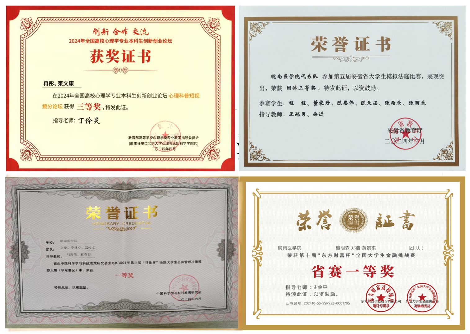 在学科领域竞赛中,获全国大学生心理与行为实验赛、公共管理决策模拟赛、金融投资大赛等国家级专业学会举办的竞赛二等奖3项、三等奖4项,省级一等奖10项,省级银奖3项、铜奖8项。