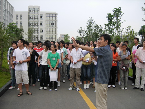 辅导员带领新生参加校园,介绍学校的概况 会后,辅导员李曙同志充当导游,给新生耐心介绍了学校的布局及注意事项。在全系师生的不懈努力下,我系2008级新生年级各项工作正在有条不紊的进行中。
