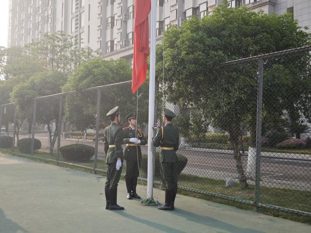 上午七点整,升旗仪式正式开始,国旗护卫队迎着朝阳,迈着铿锵有力的步伐护卫五星红旗入场。伴随着雄壮嘹亮的《义勇军进行曲》,五星红旗冉冉升起,全体师生庄严肃立,齐唱国歌,爱国之情油然而生。
