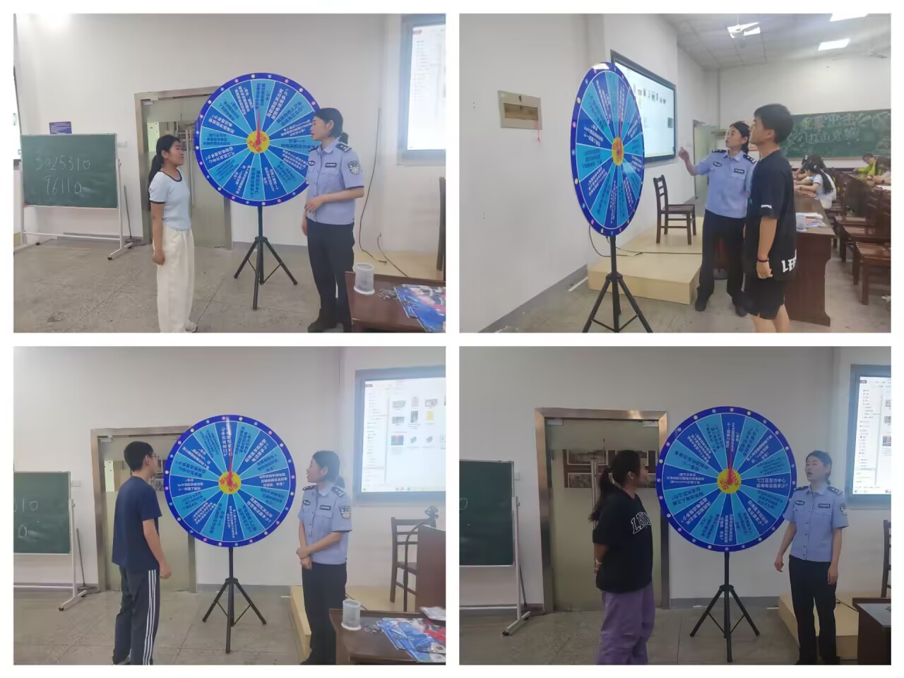 趣味互动:反诈知识入脑入心。为提升宣传效果,活动现场设置了“反诈知识大转盘”有奖问答环节。学生们踊跃参与,通过转动转盘回答防诈问题,如“国家反诈中心咨询电话是多少?”“收到不明链接时正确做法是什么?”“转账给他人之前应该先怎么办?”等,答对的同学获得了精心准备的反诈主题鼠标垫、笔筒、钥匙扣等小礼品。轻松愉快的互动方式让反诈知识更加深入人心。活动最后,古丽号召大家将所学知识分享给同学家人朋友,争做“反诈宣传员”。“今天的活动既有趣又有用,我学会了怎么识别骗局,还要提醒爸爸妈妈注意防骗。”一名参与活动的学生说道。