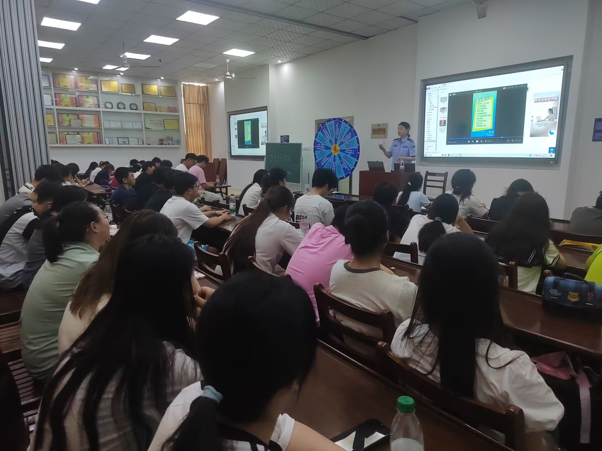 为进一步增强学生防范电信网络诈骗的意识和能力,筑牢校园安全防线,5月22日下午,保卫处联合法医学院邀请高教园区派出所大学城社区民警古丽走进校园,开展了一场形式多样、内容丰富的反诈宣传活动,通过案例宣讲、互动问答、趣味游戏等形式,为法医学院2024级全体学生带来了一堂生动的安全教育课。