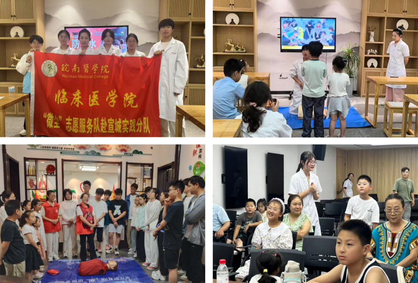急救技能普及,筑牢安全防线。暑期伊始,“微尘”志愿服务队急救技能普及分队率先行动,在芜湖、宣城两地开展生命安全守护行动。志愿者们通过现场演示、互动教学等方式,详细讲解心肺复苏、AED使用及海姆立克急救法的操作要点;设置模拟急救课堂,在情景体验中讲授基础自救技能;同步提供简易义诊服务,有效提升了当地群众应对溺水、中暑等突发意外的能力。