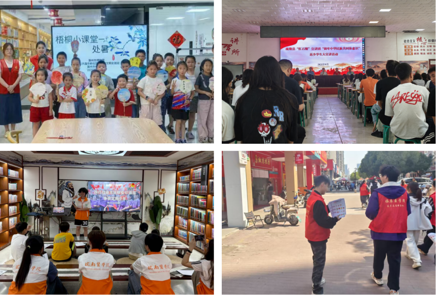 专项团队助力,籽籽同心拼图。在文化传播与民族团结方面,“微尘”志愿服务队成功入选“石榴行祖国行”专项社会实践团队。志愿者们带领当地学生参观于田县博物馆等红色遗迹,通过实物展览、历史讲解,引导学生感悟先辈奋斗精神;队员迪丽娜孜结合自身成长经历开展红色宣讲,增进各民族学生的认同感与凝聚力。在于田、和田两地,通过民族歌舞表演、传统手工艺品展示等形式,展现多元民族文化魅力;同时组建“三下乡”健康服务队走进乡村,普及卫生健康知识,为当地居民健康保驾护航。