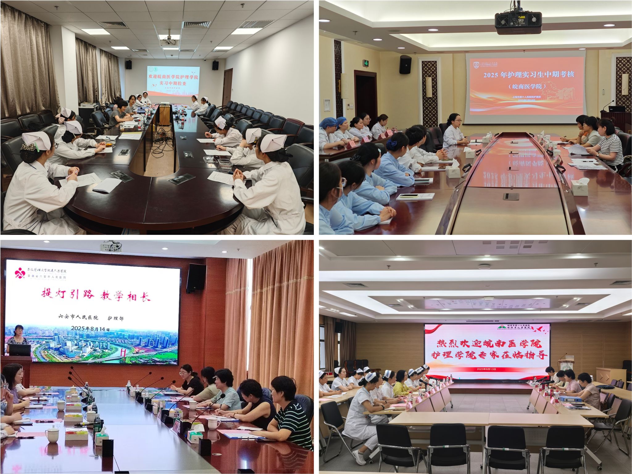 为加强实习教学管理,提升实践教学质量,促进医教协同育人,7月至8月,护理学院组成3个检查组,分别前往上海市第十人民医院、上海市肺科医院、蚌埠市第一人民医院、六安市人民医院、阜阳市人民医院、太和县人民医院及太和县中医院等7家医院,开展实习中期检查工作。