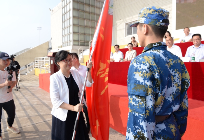 围绕“为人、为事、为学”,廖圣宝对新同学们提出了殷切的期望:一是坚定信仰为人,在追求理想中成人;二是脚踏实地为事,在砥砺奋进中成长;三是求知若渴为学,在实践锻炼中成才。最后,廖圣宝强调,生逢盛世,当不负盛世。新的征程已经启航,希望同学们秉承校训精神,紧紧抓住大好学习机会,不负最美年华,全面夯实服务祖国发展、民族复兴的品质、学识、能力基础。在国防教育和军事训练实践课中,希望同学们端正态度、认真参训,严守纪律、听从指挥,锻炼体格,磨练意志,展现良好的精神风貌,以优异成绩致敬青春。