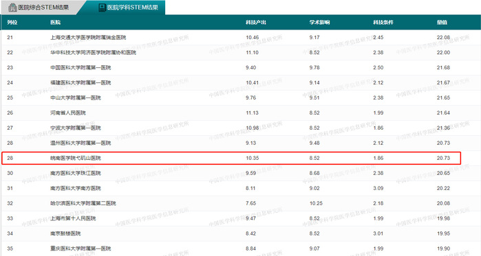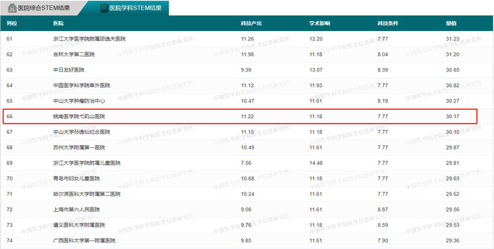 7月6日,中国医学科学院发布2022年度中国医院/医学院校科技量值(STEM)暨五年总科技量值(ASTEM),第一附属医院各有8个学科进入2022年度科技量值全国百强、五年总科技量值全国百强,入围学科数分别在全省医疗机构中排名第四和第三。