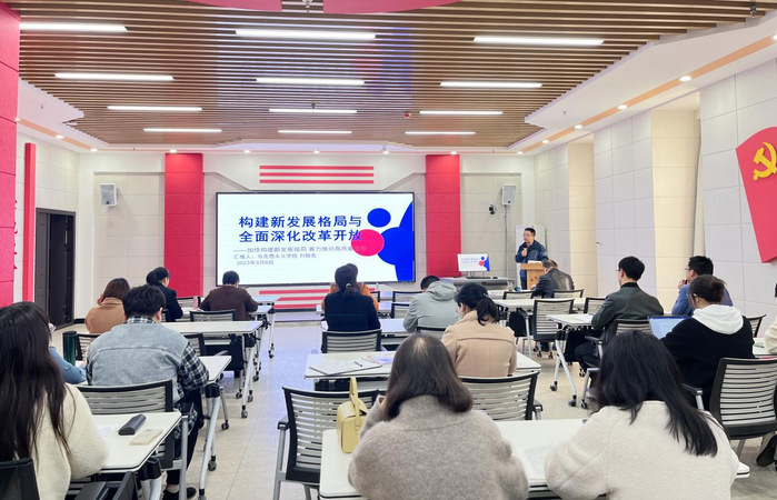 本次论坛由马克思主义学院毛泽东思想和中国特色社会主义理论体系概论教研室主任刘振宏主讲。刘振宏博士以“构建新发展格局与全面深化改革开放”为主题,分别从“从全局和战略的高度准确把握新发展格局”、“加快构建新发展格局增强国内大循环的内生动力和可靠性”、“加快构建新发展格局大力提升国际循环质量和水平”、“以加快构建新发展格局推动高质量发展”以及“在推动长三角更高质量一体化发展中展现安徽更大作为”五个方面,结合国内经济发展现状,详细介绍新发展格局的各个维度,并与安徽发展的生动实际相结合,深入浅出。整场讲座精彩生动,引发与会人员的思考,大家受益匪浅。