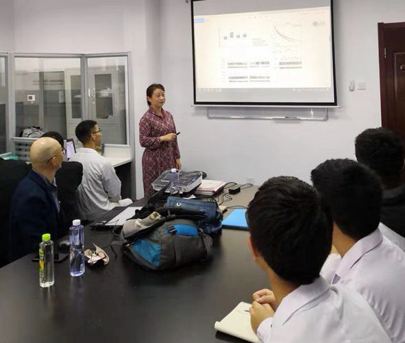 王雪融教授围绕《有关治疗糖尿病药物格列本脲对癌症的治疗》专题,从相关分子机制、研究进展、阶段成果等方面,向与会师生介绍了其研究课题,并就实验方案设计以及一些基本的实验技术与大家进行了深入探讨。随后,研究室科研小组成员黄滔和谢强进行了课题汇报展示。本次学术交流促进了我校对肿瘤治疗新疗法的认识与学习,有助于双方在肿瘤研究方面共同学习与进步。