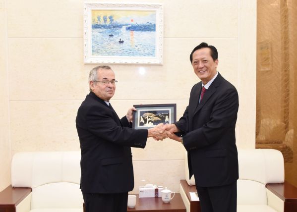 校党委副书记、院长章尧和副院长廖圣宝在外事处、科研处等部门负责人陪同下,会见了Arieh Warshel教授一行。章尧简要介绍了我校的办学历史及规模现状,对各位专家和领导的到来表示热烈欢迎和诚挚感谢,并向Arieh Warshel教授等人赠送了纪念品。